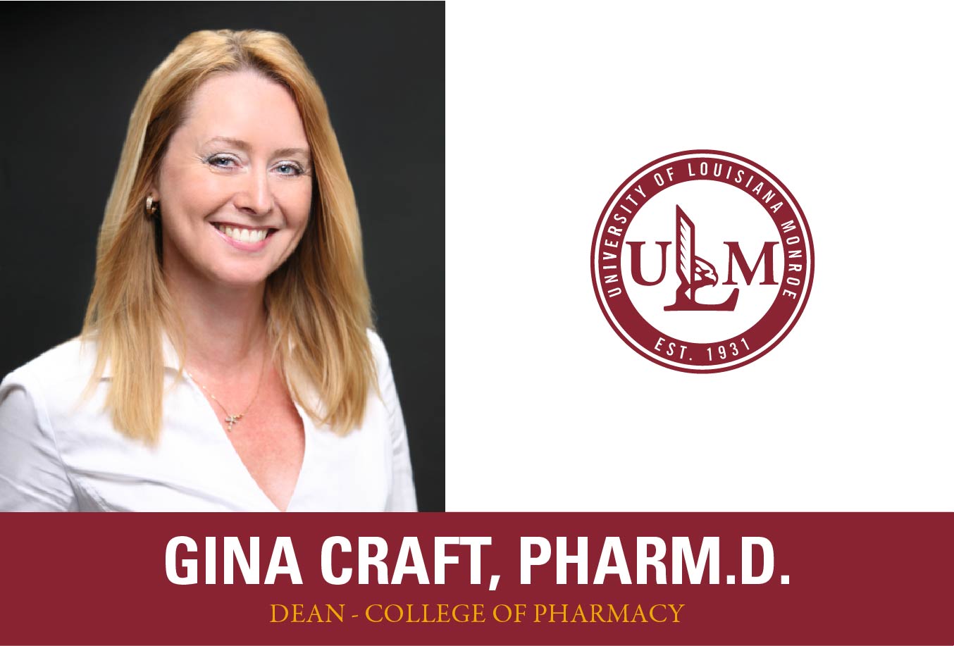 The University of Louisiana Monroe has named Gina Craft, Pharm.D., as the next Dean of the College of Pharmacy. Craft is a 28-year veteran of ULM, most recently serving as Interim Dean since August 2025.