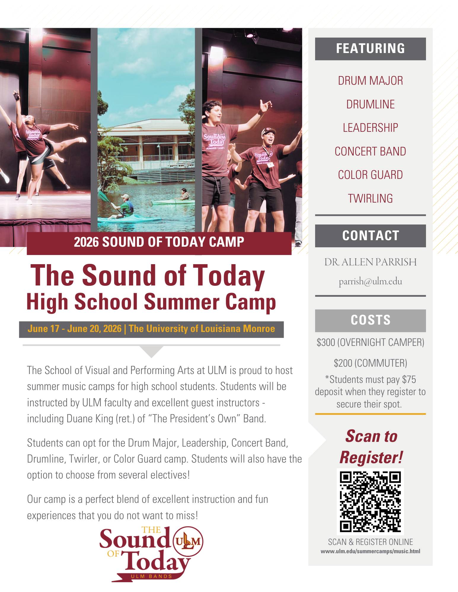 - Camp Location: Sound of Today Band Building, 306 University Ave., Monroe, LA 71209